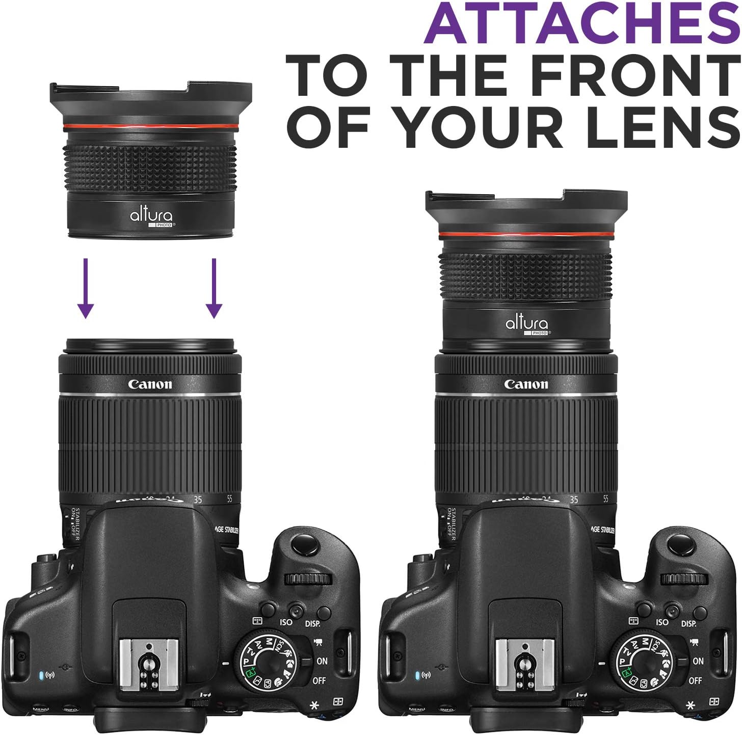 Introducing the Altura Photo 58MM 0.35x Fisheye Wide Angle Lens with Macro Portion, designed to take your photography to the next level! Compatible with a wide range of DSLR cameras including EOS Rebel series (70D, 77D, 80D, 90D), T series (T8i, T7, T7i, T6i, T6s, T6, T5i, T5), T4i, T3i, T100, SL1, SL2, and SL3, this lens is a must-have for any photography enthusiast.